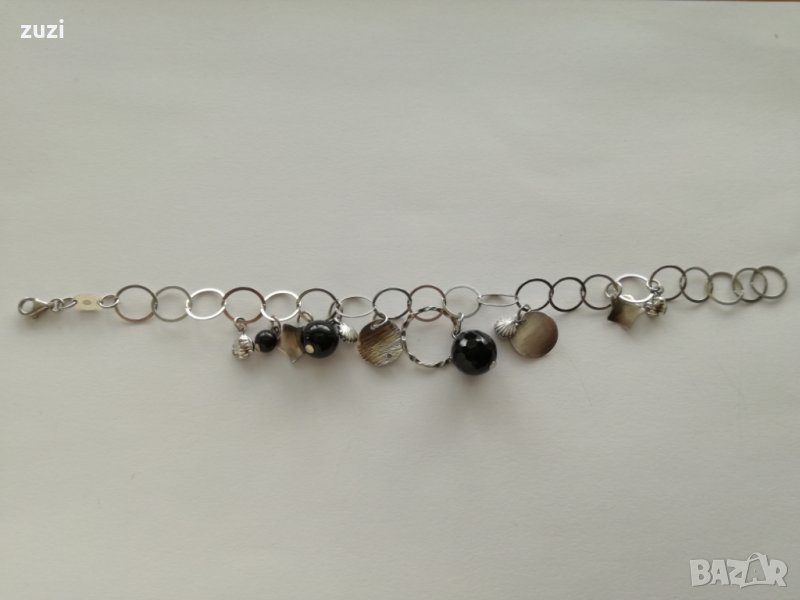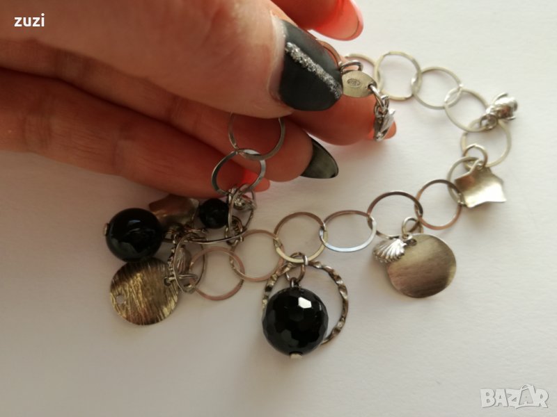 Италианска сребърна гривна с оникс и черни кристали 925-сребро → Обява 24450215