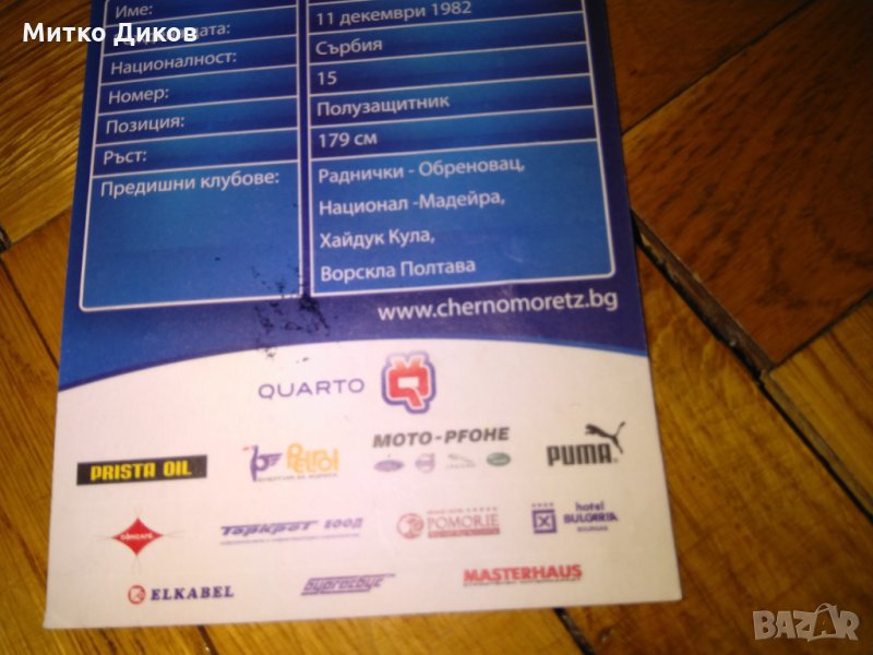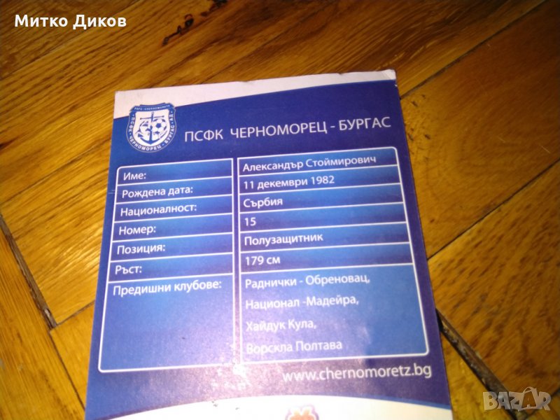 Картичката е от сезон 2009-10 г на Александър Стоимирович с подпис играл тогава в Черноморец бургас-изпращам по еконт с отстьпка