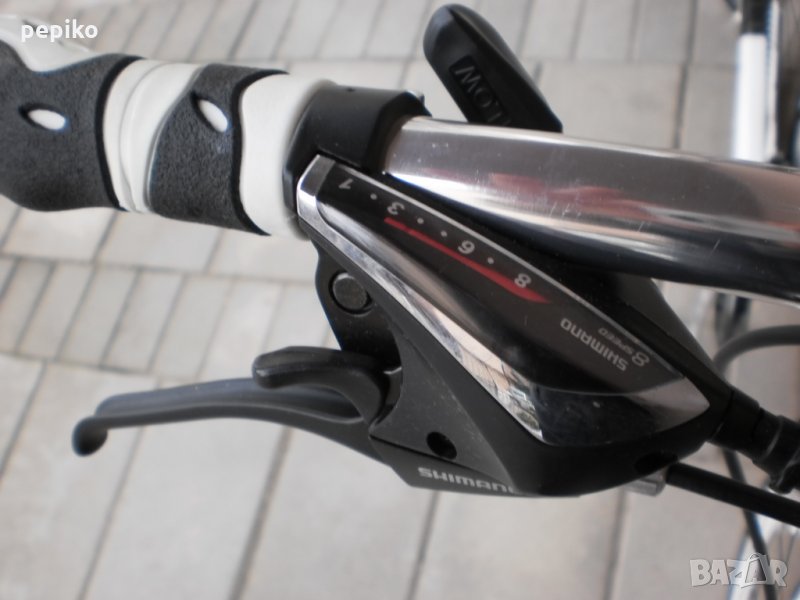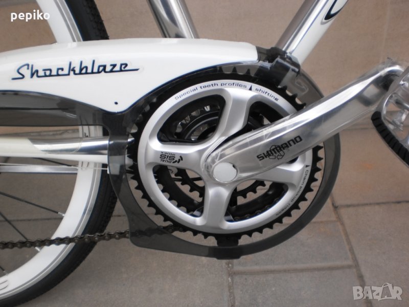 НОВ спортен градски велосипед SHEER MAN 28 цола сглобен във България,алуминиева рамка ALLOY CABLE INCIDE 28 цола с 24 скорости,фиксирани превключватели SHIMANO EF60 4-FINGER 3 х 8,алуминиеви курбели SHIMANO M191 48 N 38 28T,педали XERAMA SP-811,преден отклонител SHIMANO M191,заден отклонител SHIMANO M410 ALIVIO,задни венци SHIMANO HG30 8SPEED 11-32T,алуминиеви главини QUANDO KT-A55F и KT-A52R,верига KMC Z-51,пластмасов предпазител на веригата,пластмасови калници,чашки за вилката NECO H50M,алуминиево колче на седалката SHOCKBLAZE,удобна седалка на релси SELLE ROYAL LANCIA MAN,алуминиево колче на кормилото SHOCKBLAZE AJUSTABLE,алуминиево кормило с дължина 600мм.ф16мм.предна и задна алуминиеви вибрейк спирачки SHIMANO M422,алуминиева амортисьорна вилка RST SS-M7 TRAVEL 35MM,алуминиеви двойностенни усилени капли,емайлирани спици,гуми със безшумен грайфер КЕНДА к 184 700 х 28с FRENCH VALVE,осветление от пред и от зад електронно,размер на рамката 48 х 55 см.тегло 15.6 кг.Уникален.