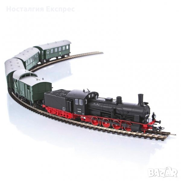 Комплекта включва модел на парен локомотив БР55 на ДБ - Немски железници. ( модифицирана версия на локомотива е използвана в БДЖ като серия 26 , Опроводен за стандартен декодер, със добавяне на декодер + 40лв ) Четири пътнически вагона. овал релси, лява и дясна