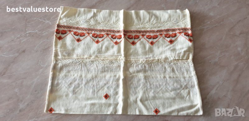 Кафяво-бяло-оранжева Памучна Ръчно Бродирана Калъфка За Възглавница 55-44см → Обява 24463112