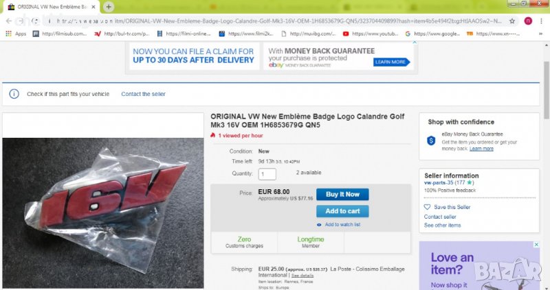 ebay.com поради високата цена със сигурност емблемата ще попадне на