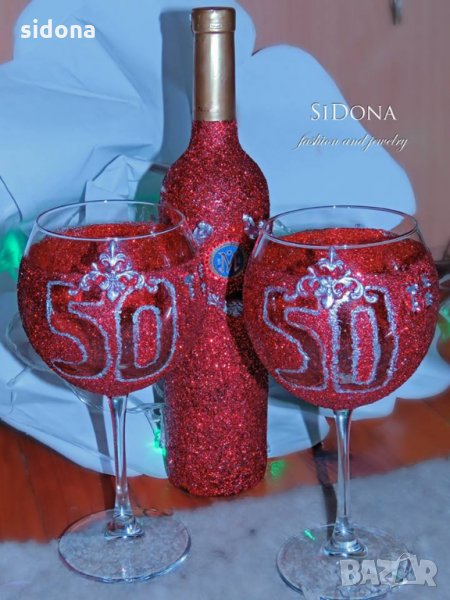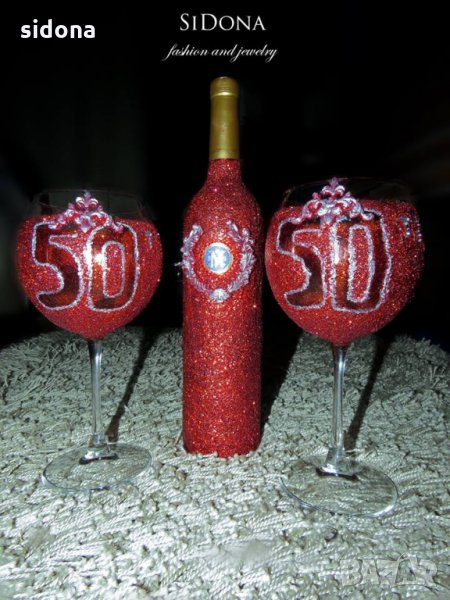 Представяме ви - Комплект "50-th".Изработен е от брокат,камъчета и силиконови елементи. Бляскав ,лъскав,в ярко червено.Поръчайте за вашия повод в любим цвят!
