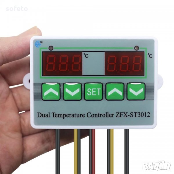 Програмируем термостат за управление на системи за топла вода, парно или климатична техника - за контрол и управление на ДВЕ температурни зони. Снабден е с ДВА термодатчика за двете температурни зони и управление на два изхода (помпа, ел нагревател и др.) С ДВА ДИСПЛЕЯ ПОКАЗВА В РЕАЛНО ВРЕМЕ ДВЕТЕ ТЕМПЕРАТУРИ.