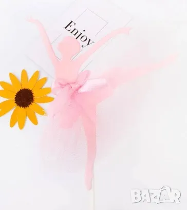 3 цвята балерина с тюл картонен топер украса декор за торта парти → Обява 24468899