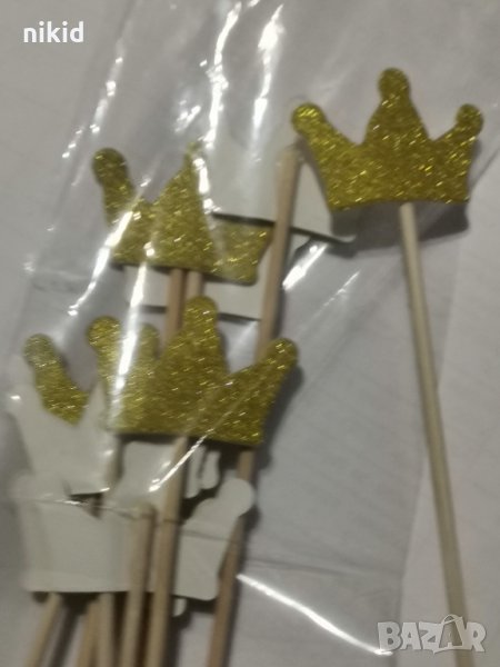 10 бр корона малка златиста брокат картон топер топери клечки декор украса за мъфини кексчета → Обява 24470691