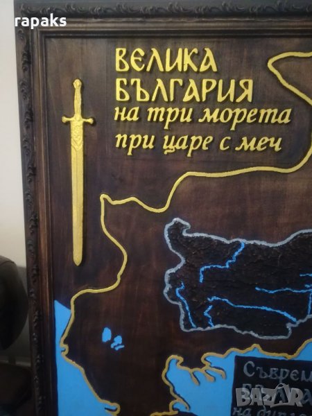 дърворезбата с ликът на Васил Левски. Дърорезбата с България на три морета е 680 лв. Материалът на дърворезбите е липа, а размерите са 65-80 см. Снимките са актуални, а при необходимост мога да изпратя още. Всяка дърворезба има отделна своя обява с точен размер и цена. Обявите им можете да видите през раздел " още обяви на потребителя" в дясно под телефона. Продавам и оръжия за украса и декорация. Те са обезопасени с документ, или декоративни, т. е. точни, масивни и пълноразмерни копия на пушки, пистолети, автомати, револвери и т. н. Тези реплики са произведени фабрично НЕ стрелящи, като са абсолютни копия на истинските. Всички тях безпроблемно можете да закупите, поставяте и излагате на видно място, в това число: стени, камини, етнокътове, мъжки бърлоги, бирарии, пивници, хотели, хижи и т.н.. Не се изисква документ за покупка и притежанието им и изпращам с Еконт и опция отвори и виж.