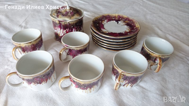 - Порцеланов сервиз за кафе - 1 захарница + 6 чаши + 6 чинийки -