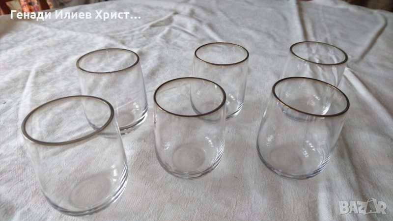 - Стъклен сервиз за вода със златиста апликация - 6 големи чаши -