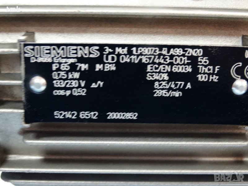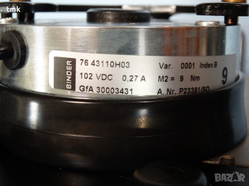 В механизмът е включена и спирачка Binder със захранване 102V DC и сила 9Nm, а също така и техническа документация за устройството. Мотор-редукторът има лек транспортен дефект, който се изразява в лека пукнатина на пластмасовия капак.