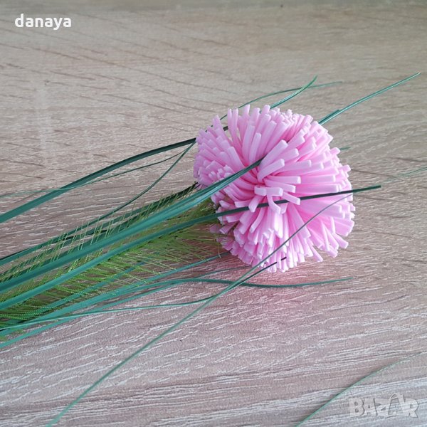 Всеки стрък е с дължина 74см. Стабилна дръжка. Цената е за стрък тревичка с два карамфила.