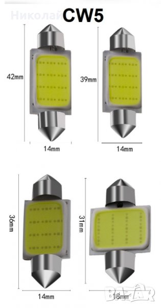 CW5 - (плафони,подсветка номер 31мм/36мм/39мм/42мм Обикновена - 2.00лв за брой , Canbus - 4лв за брой