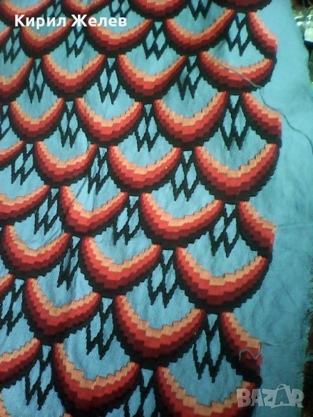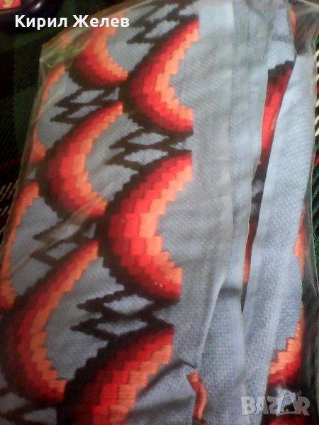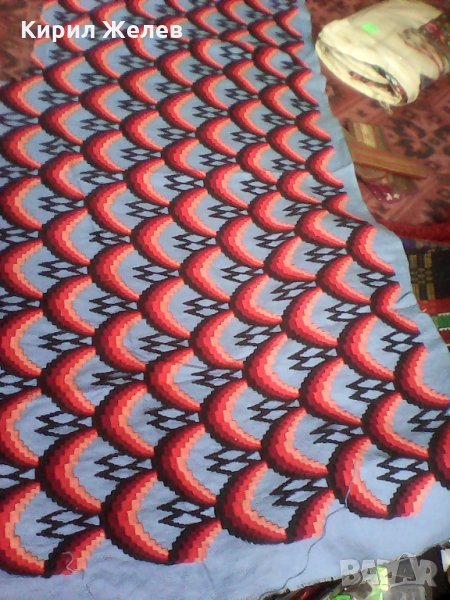Здраво запазено красиво каренце червено старинно шито на рака широко е 71 см дългое 1,15 см