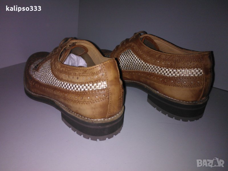 Обувките са изработени от естествена кожа със състарен ефект и текстил.