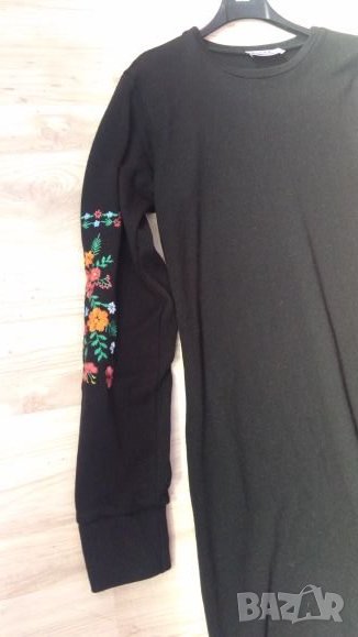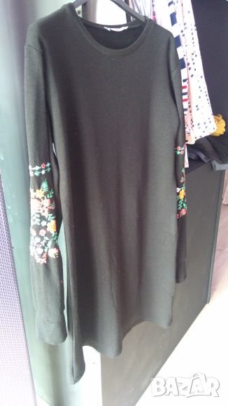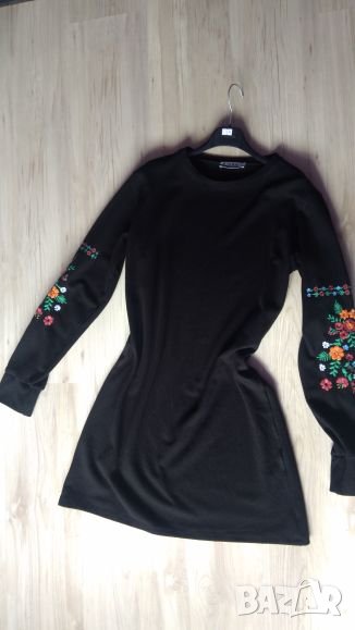 Нова рокля, машинно плетиво с красиви бродерии по ръкавите,черна, размер М/L