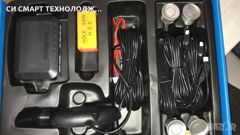 Комплекта на НОВ Ултразвуков парктроник с четири датчика / черни или сиви на цвят / и ЛСД дисплей включва :