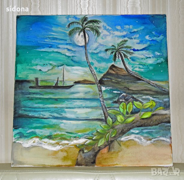 Картина-рисувана върху платно с размери 40 на 40 см. Морски пейзаж ,рисуван с акварел.