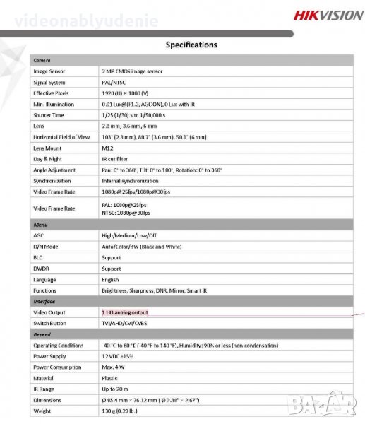 HIKVISION HD-TVI / AHD / HD-CVI/ CVBS - Със собствен джойстик бутон превключвател на режимите!