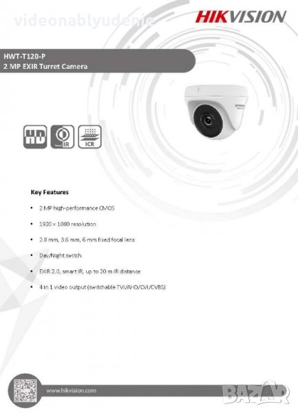 HikVision HWT-T120-P 2MPx HD-TVI AHD HD-CVI HDTVI 4В1 Водоустойчива Камера EXIR Нощно Виждане 103°