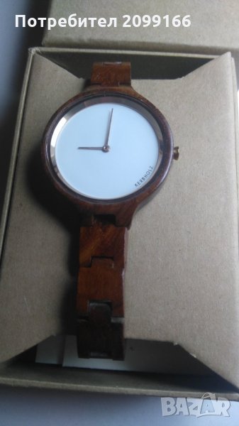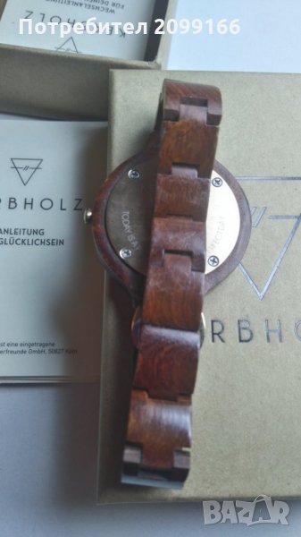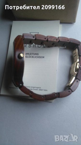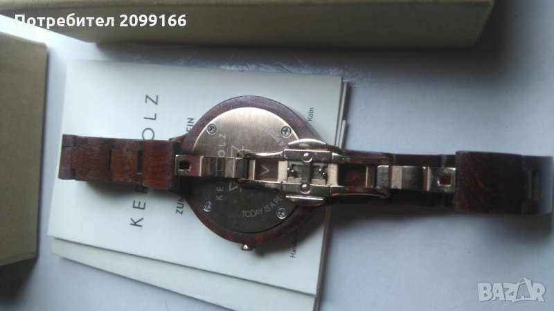 Ръчно изработени ръчни часовници, изработени от фино естествено дърво, цвят: палисандрово дърво , закопчалка и корона от покритие, неръждаема стомана ^ Особено висок комфорт при носене поради ниското тегло и специалното усещане за дърво.