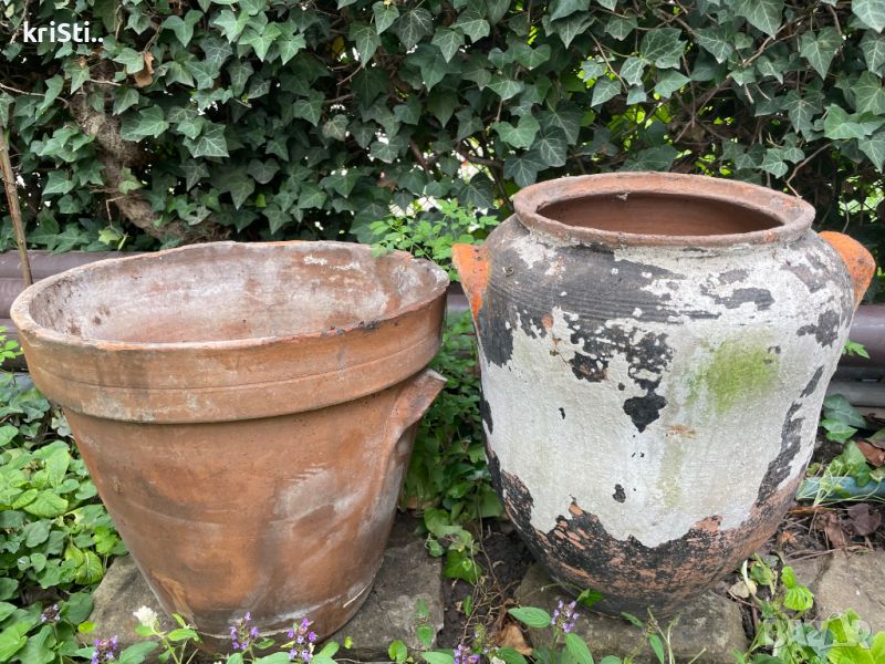 предлагам две от по-големите стари, но здрави саксии =50лв двете,голяма правоъгълна саксия=60лв, и лот от интересни саксии+високи градински кашпи=по договаряне(имам и няколко цветарника), 50ина броя керемиди 40х24см на фабрика'ЛЪВЪ София=по договаряне,три ретро печки с реотани за отопление(на живо са по красиви)-49лв/бр ,две големи чугунени мивки по 59лв/бр и обла масив порцеланова=49лв, имам и малко части за стари чугунени печки+ кремиковските ламарина-листове, стари сгъваеми столчета , медни и емайлирани старинии за дома и градината =по договаряне