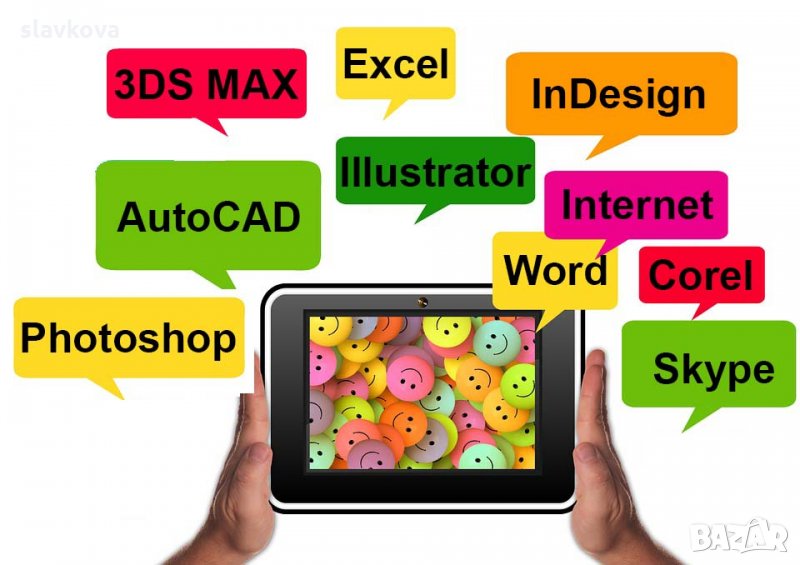 Предлагаме и AutoCAD, 3DS Max Design, Adobe Photoshop, Illustrator, InDesign, Windows, Word, Excel, Internet.
