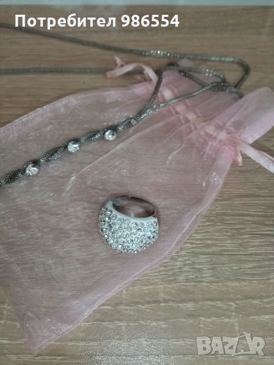 Нови пръстен и колие посребрени с камъчета.