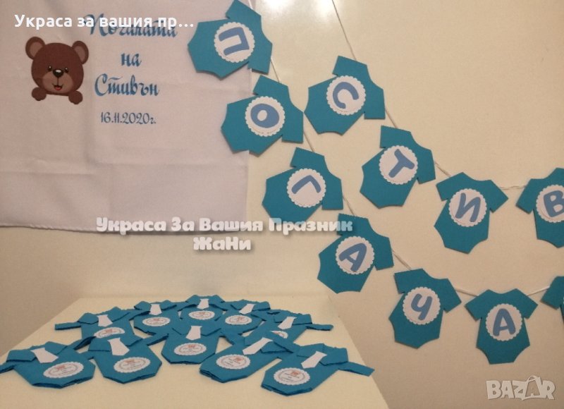 *едноцветни слафетки декорирани по темата или салфетки във формата на боди