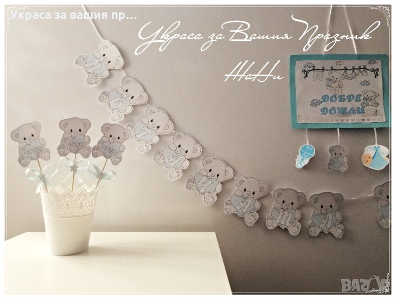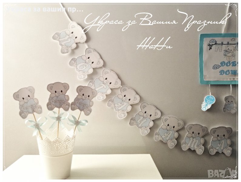 Украсата може да се изработи в желаната тема и цветове и да включва"