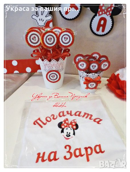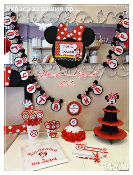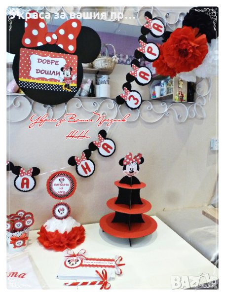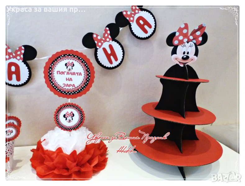 украса за погача на тема Мини Маус в червено