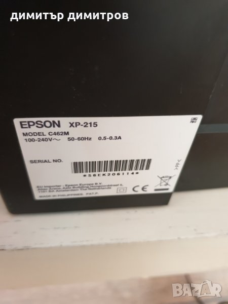 Многофункционален мастилено-струен принтер Epson XP-215 Expression Home WiFi.Epson Expression Home XP-215 Безжичен AIO ревюта: Цвят за печат Мастиленоструен принтер.Комплект със захранващ кабел и usb кабел.