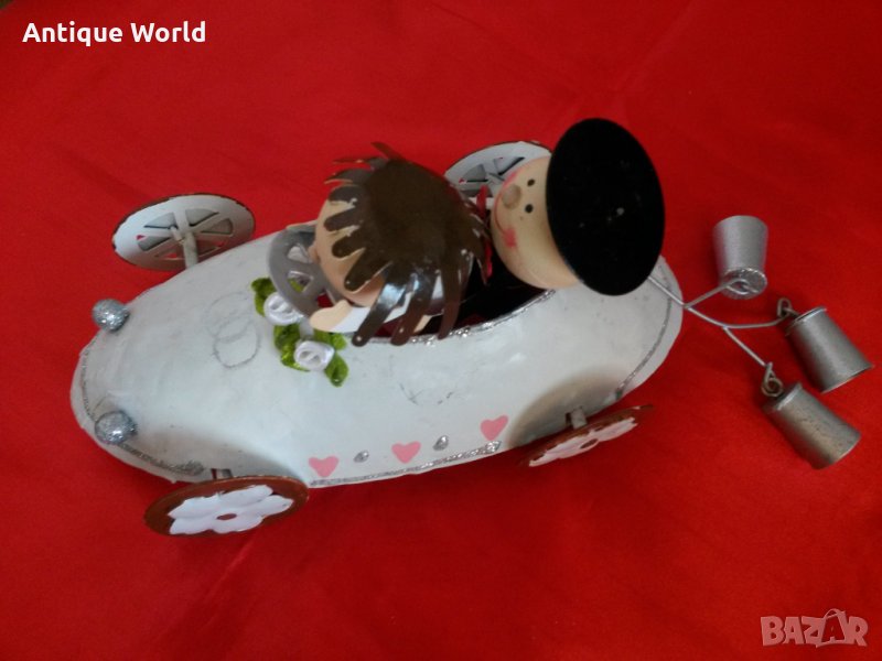 Стара Красива Шведска Ламаринена Играчка Автомобил Младоженци .Състоянието е видно.