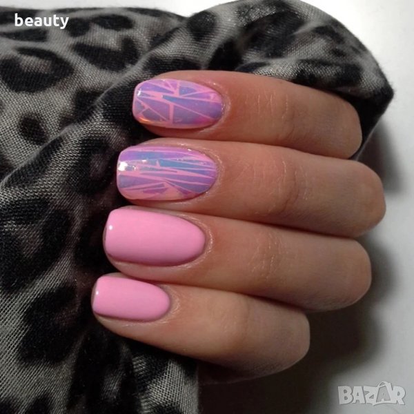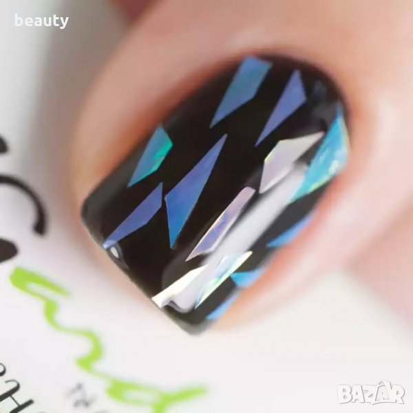 Атрактивно фолио хамелеон за декорация на маникюр - стъклен ефект. Подходящо за вграждане с ув гел или акрил. Цвета на фолиото се променя в зависимост от светлината и основата върху която е сложено. Размер на един лист 4см*20 см