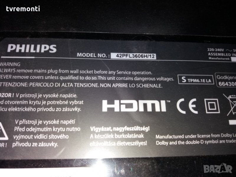 MAIN AV 715G4609-M3A-000-005B model Philips 42PFL3606H тествана от нашия техник