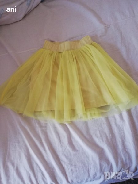 жълта рокля с маргаритки,горната 4аст памук,надолъ с тюл българско производство,с нормални следи от носене и същата пола двете заедно за 8лв