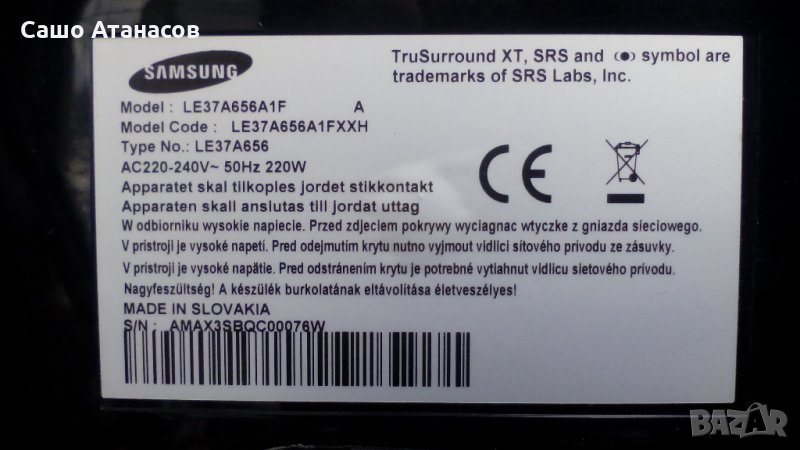 SAMSUNG LE37A656A1F със счупена матрица ,BN44-00216A ,BN41-00974B ,BN41-00944A ,VIT71037.50 REV:1