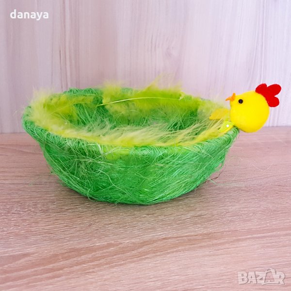 Малък панер за великденски яйца или лакомства с пиленце. Красива декорация за великденската маса. Предлага се в два варианта - зелен и пастелено зелен.