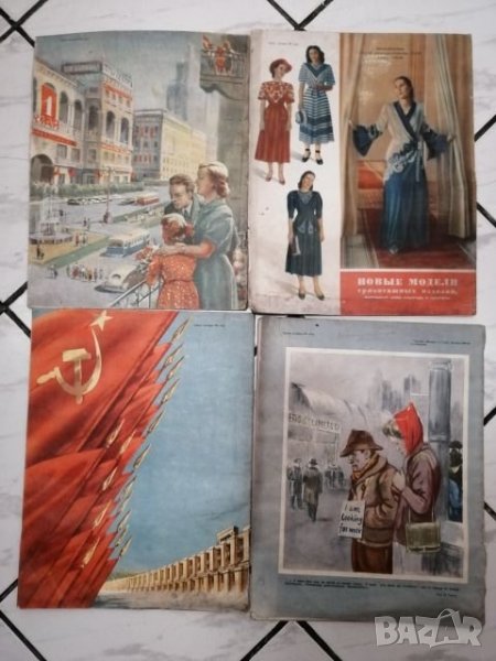 Четри броя списание Работница 1951 година, брой 1/4/8/10. Два броя Българо-съветска дружба, година 1952, брой 2/8. Един брой Огонек година 1950, октомври N 40. Цената е 50 лв за седемте броя.