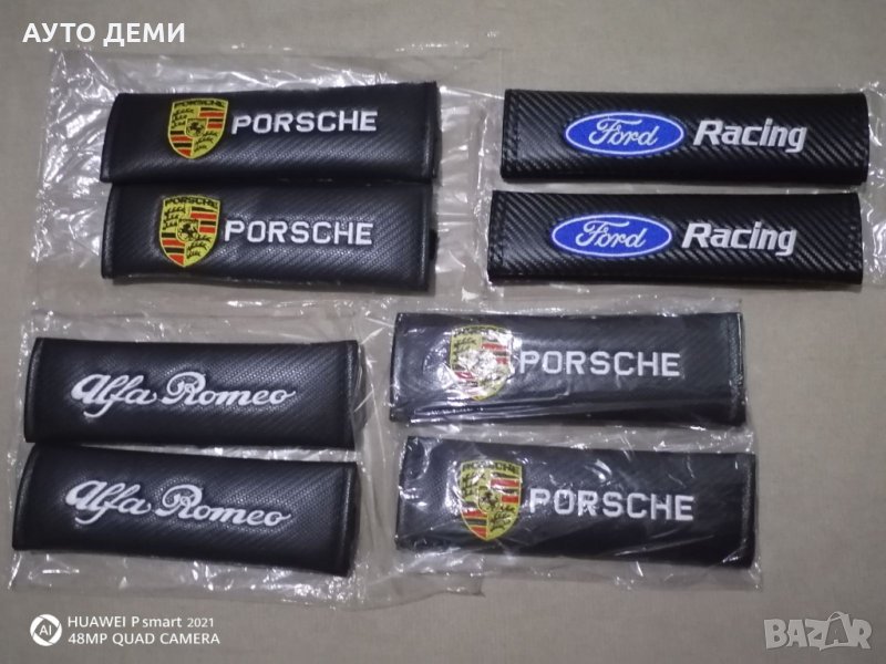 9. Качественни черен карбон кожа протектори за авто колан с лесен и бърз монтаж и демонтаж с помоща на велкоро лепенки .