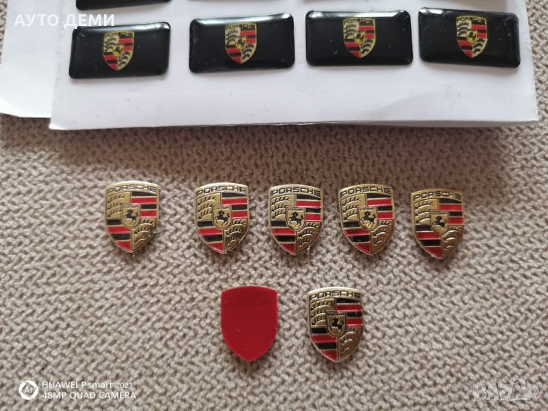 7. Метални златисти самозалепващи емблеми с цветна емблема на Порше предназначени за ключа на автомобила .