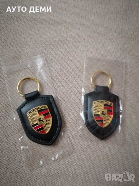2. Втори модел кожен черен ключодържател с релефна метална цветна емблема на Порше .