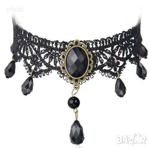 Черен Дантелен чокър чокер колие с висулки мъниста → Обява 24569103