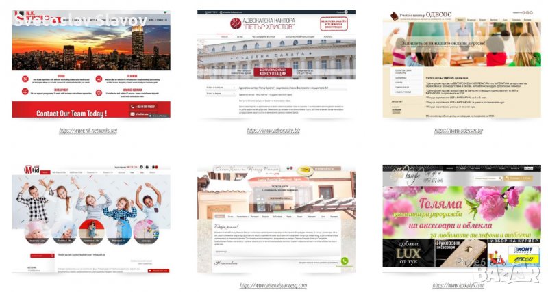 - МОБИЛНОСТ: Изключително удобни сайтове за работа от мобилно устройство. Лесно четими текстове, големи и ефектни снимки, динамичен дизайн с ефекти, висока скорост на зареждане.