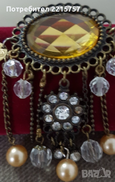 слонова кост. Ръчно гравирани. Цена 35лв......................................................................................................... 8)К-т от Лунен камък и обеци 20лв........................................................ 9)Синджир с голям медальон Лъвска глава заедно със синджир. Цена 35лв...............................................................................................................10)Гривна с цветни перли, винтидж. Дъл.19см. От съветско време. Цена 25лв...............................................................................................................11)Медальон руски старинен, позлатен. С черен оникс и бял циркон. + позлатено синджирче 40,5см. Цена 65лв...............................................................................................................12)Брошка старина, винтидж.Цена 28лв...............................................................................................................13)Гривна неръжд. от 6бр. тънки халки. Цена 6лв.