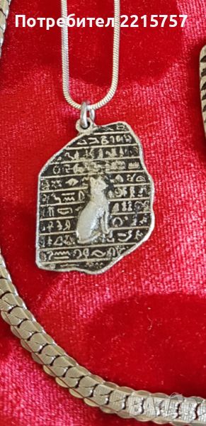1)Медальон с египетски елементи, със синджир. Размер:3см/2см. Цена 5лв.................................................................................................................2) Ланец от мед.стомана, не потъмнява и не се окислява. Дължина 47см,за 10лв. .......................................................................................................................3)Кръгъл медальон от тюркоаз и синджир, диам. Ф2см. Цена 15лв............................................................................................................ 4)К-т от натурален зелен камък Авантюрин обеци, висулки + пръстен 10лв............................................................................................................ 5)К-т обеци с натур.зелен камък Авантюрин топчета + колие с топче цена 10лв...............................................................................................................6)Гердан от планински кристал–12лв........................................ 7)Винтидж, стари индиййски обеци от
