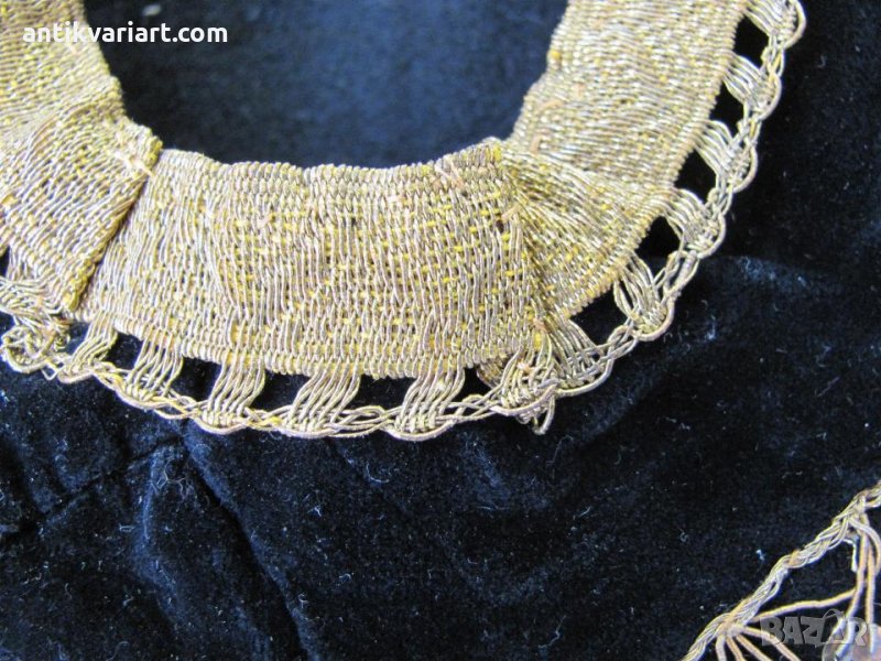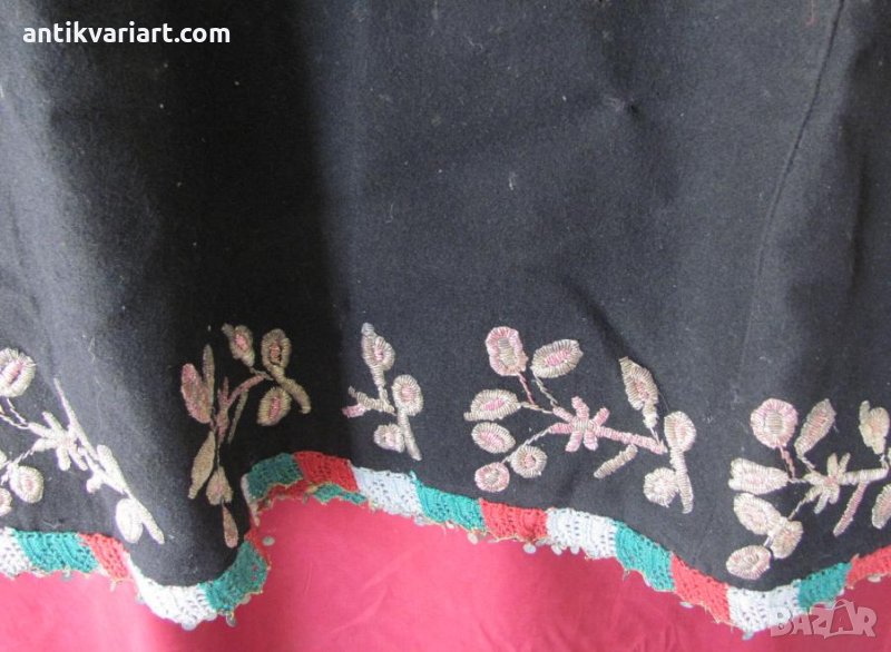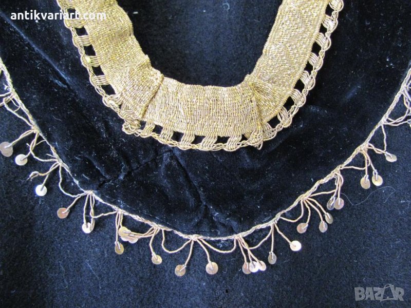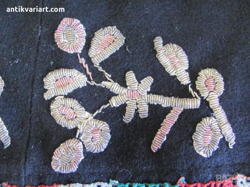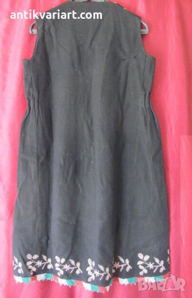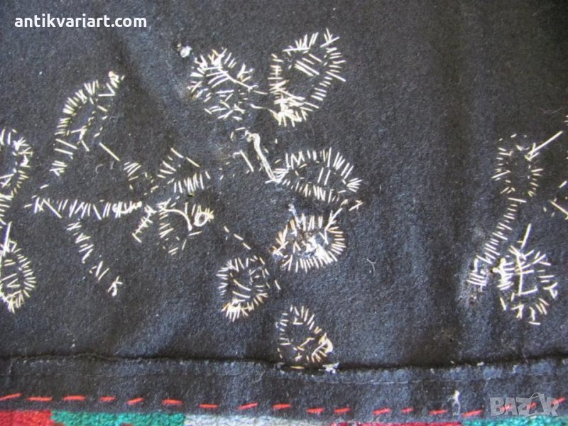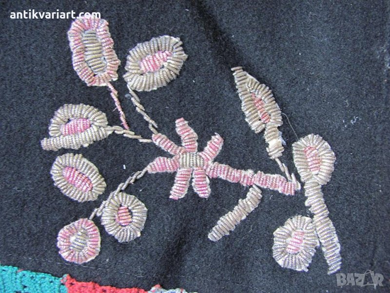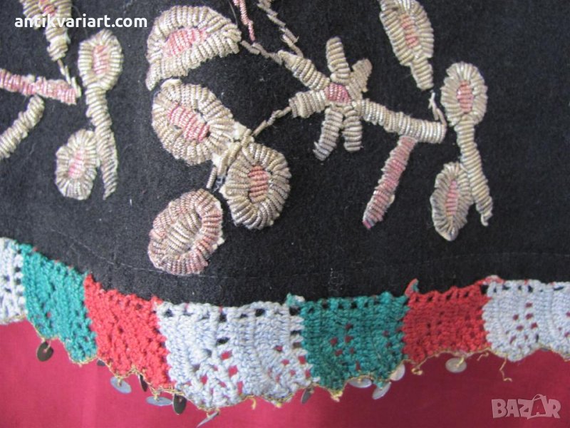 Изработена от ръчно тъкан вълнен плат много богато орнаментиран със златна сърма и паиети