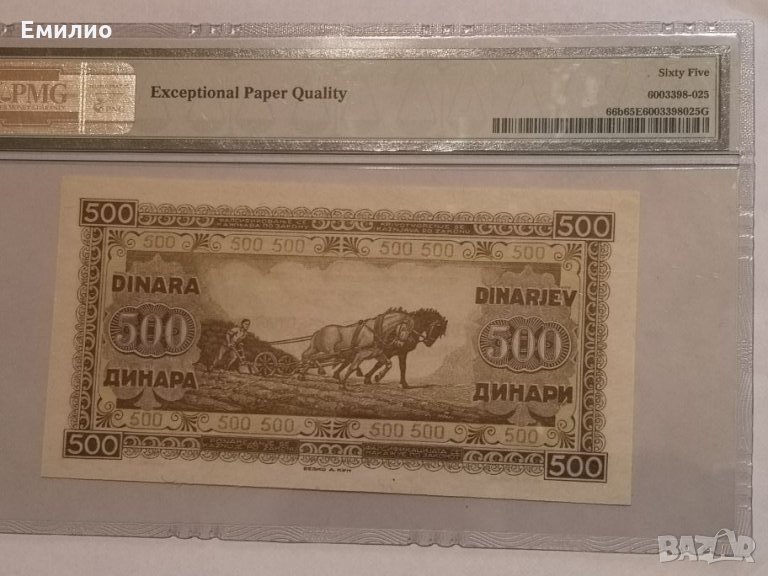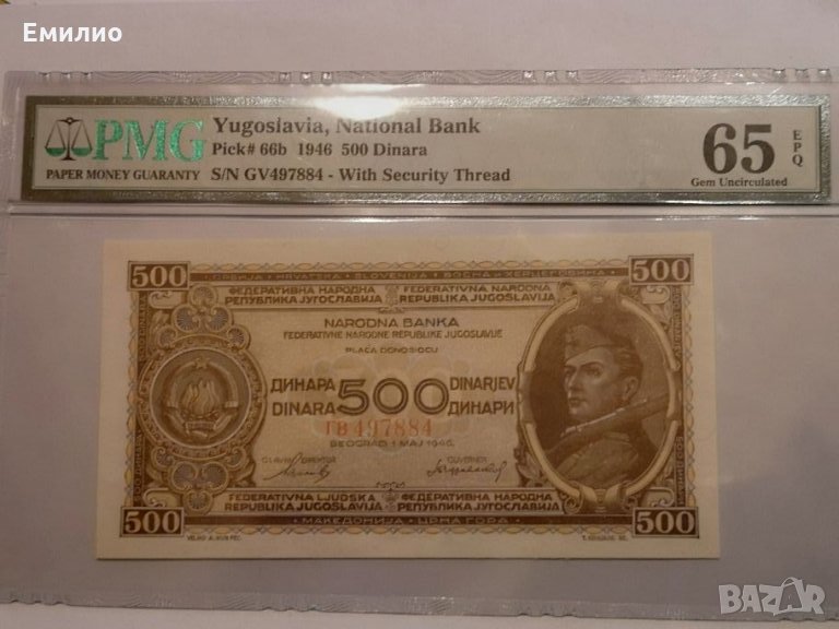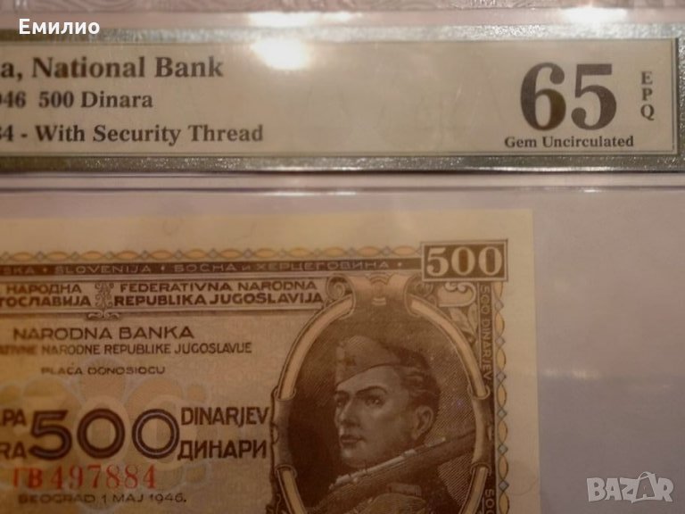 Продавам Рядка банкнота Югославия 500 Динара 1946 год. Банкнотата е СЕРТИФИЦИРАНА от