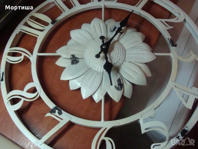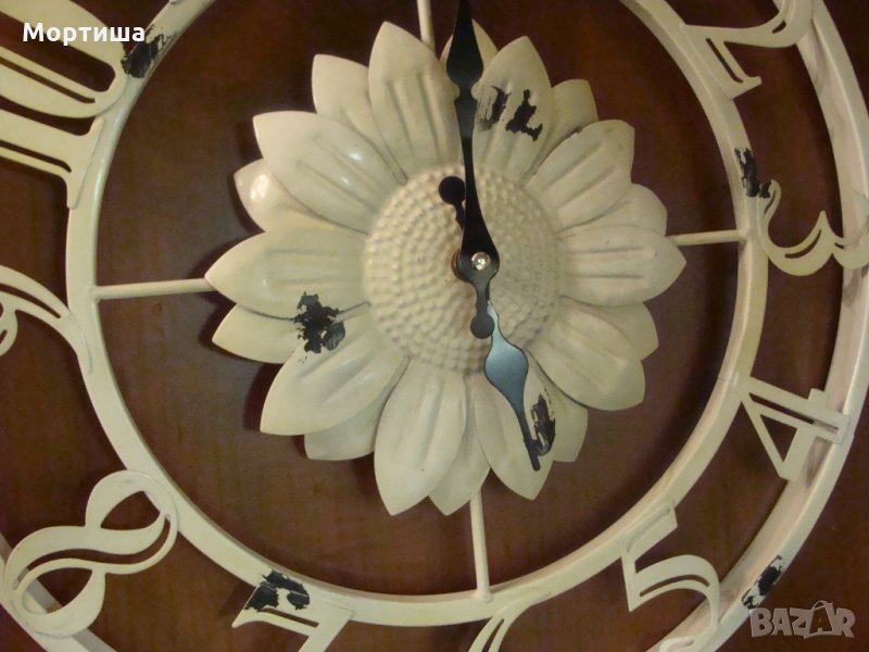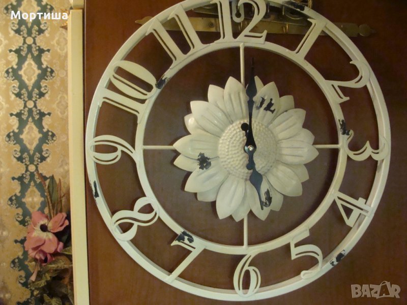 Железен немски много красив часовник във винтидж стил ( купуван е за 45 евро )Диаметър 43 см Има някакъв проблем със стрелкичките тръгва и спира секундна стрелка никога е нямал ( не ми се занимава да го поправям ).Цената не подлежи на коментар Без бартери