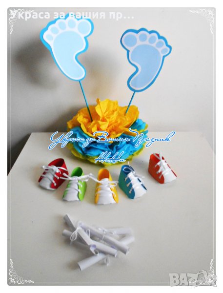 украсата за прощъпулник може да бъде изработена в желаните от вас цветове и може да включва :