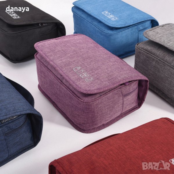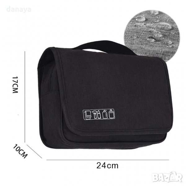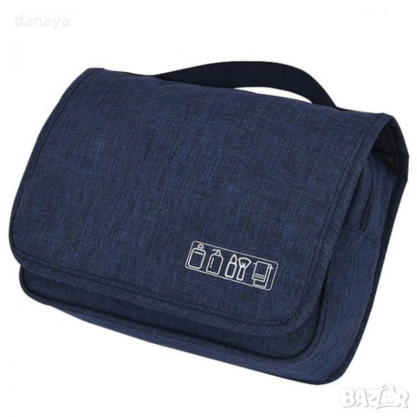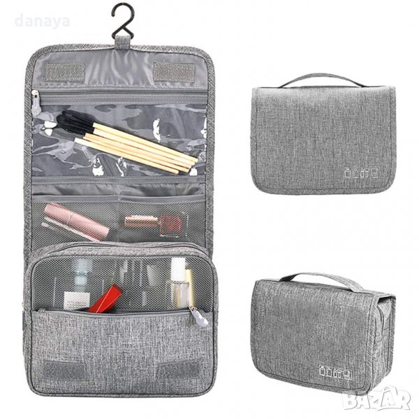 Сгъваема козметична чанта за пътуване с кука за закачане тип несесер. Чантата има много отделения и когато се отвори и закачи се превръща във висящ органайзер за тоалетни принадлежности или други дребни аксесоари. Органайзерът е изработен от непромокаема материя, която позволява да се пере. Удобен и функционален несесер чанта за козметика, подходящ за пътуване или за у дома. Несесерът е подходящ както за дами, така и за мъже.